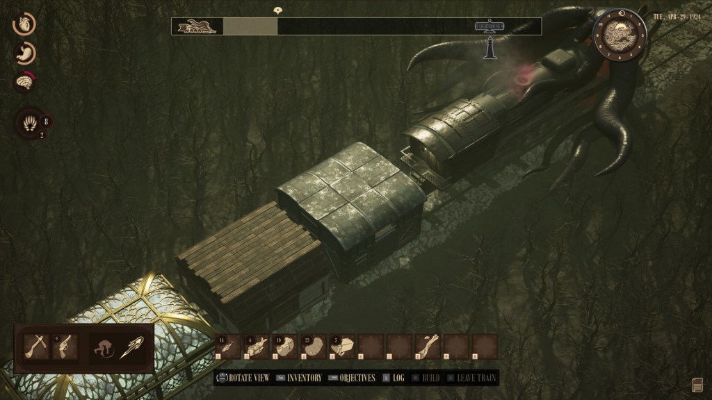 In RailGods of Hysterra, survival isn’t just about gunning down eldritch creatures. You need to scavenge for parts, resources, and anything else that can keep your supernatural locomotive steady on the tracks. There’s the ever-present dread of famine, too, though here it’s partly about fueling the train instead of feeding typical survivors. You gather metal scraps to repair rail segments, salvage rare minerals, and craft special tools or weapons. It’s survival with a macabre twist—everything revolves around your living locomotive’s upkeep and the demands posed by this otherworldly setting.